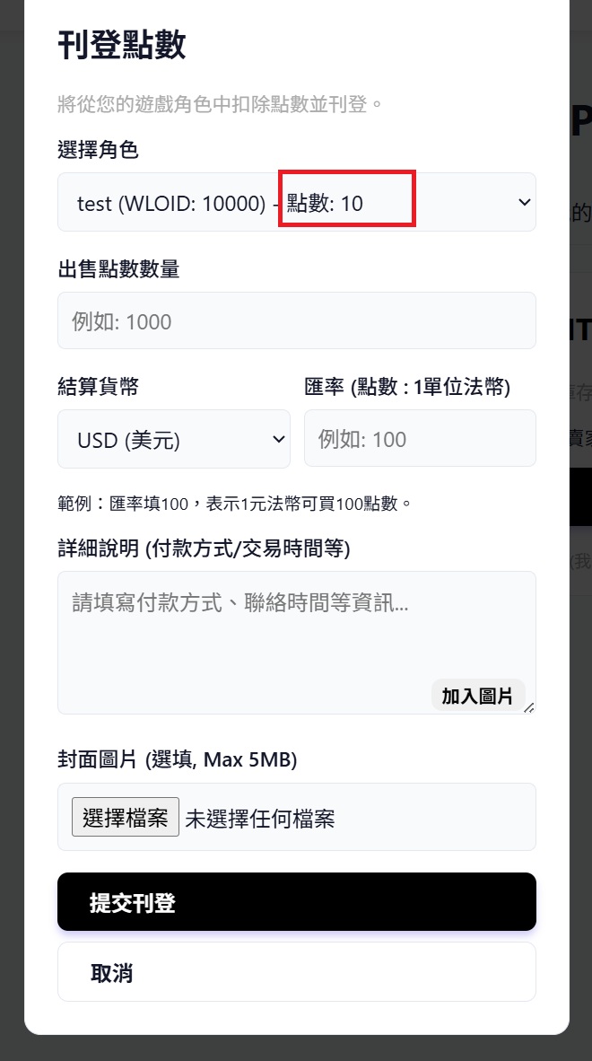 3. 成功刊登後,系統會先扣除點數
