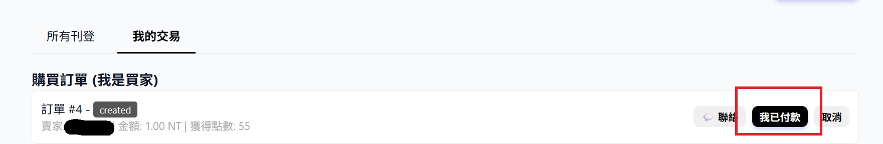 6. 確認達成交易後,點擊「我已付款」